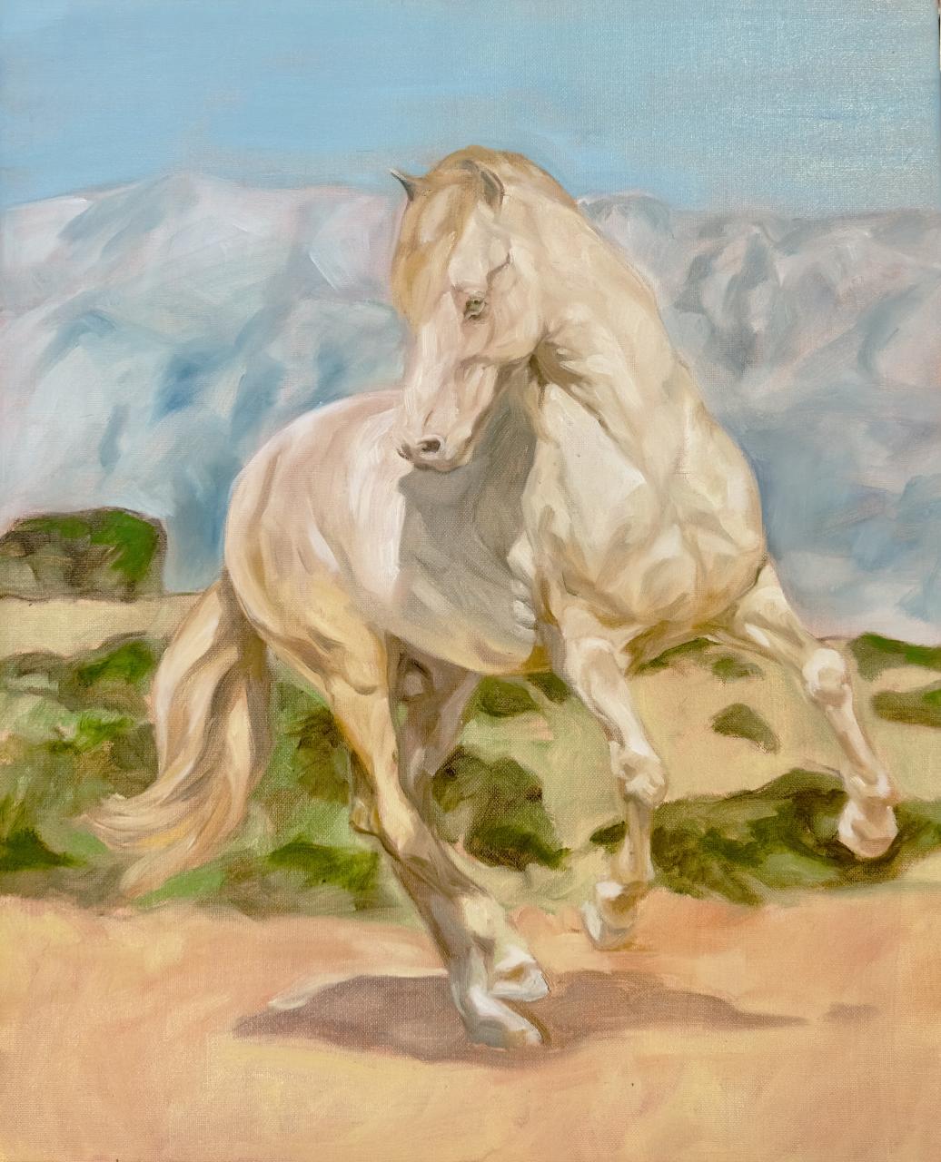 Vous choisirez ensemble une bonne photo de votre animal. Son attitude et la lumière baignant l’image seront primordiales dans votre choix. Quelques semaines après, Frédéric vous apportera un tableau à l'huile directement inspiré de cette photo. La ressemblance de l'animal sera assez fouillée, tout le monde le reconnaîtra. Afin de mettre en valeur l'animal dans le tableau, le décor sera seulement esquissé.
