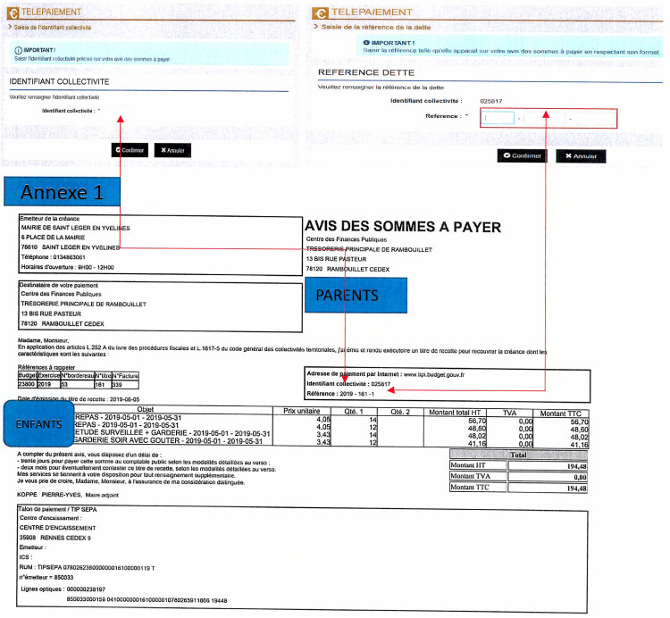 L'image ci-dessous montre les éléments disponibles sur les factures à reporter dans le formulaire de télé-paiement présenté par la DGFiP.